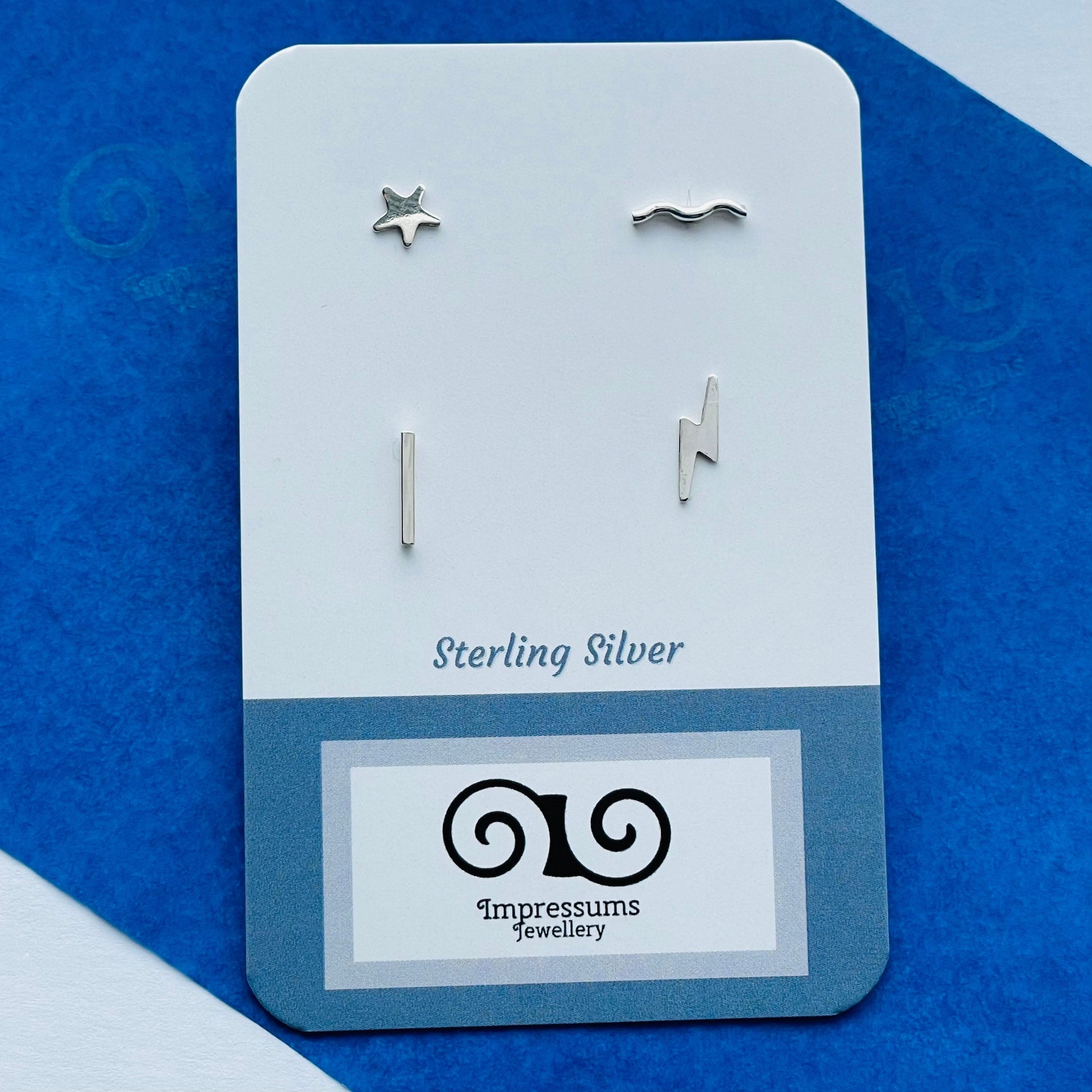 Mini Stud Collection - Star, Flash, Wavy Bar & Straight Bar